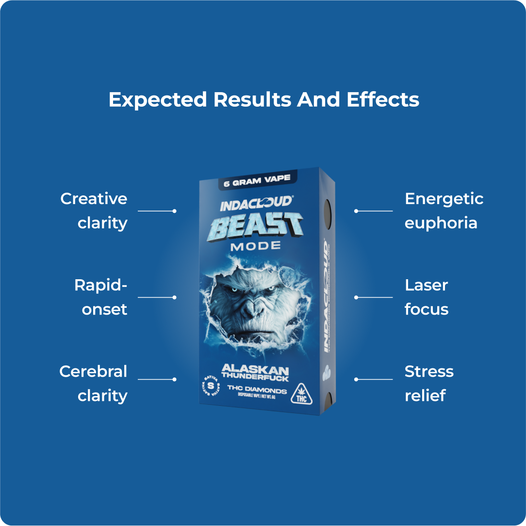 Ready to get higher than ever before? Introducing what might be the world’s largest and most powerful disposable vape. Introducing the Beast Mode Series, an extremely limited run, absolutely insane 6 gram device filled with everyones favorite THCa Diamonds. With 5 sought after strains to choose from and flavor profiles that are to die for. Coming in Alaskan Thunderf*ck (Sativa), Cereal Milk (Hybrid), Sour Apple Killer (Hybrid), Forbidden Fruit (Indica), and Grape Ape (Indica). This Vape is rechargeable, has anti clogging technology and most importantly will blow you away. No description can accurately do this justice, you just have to try it for yourself.