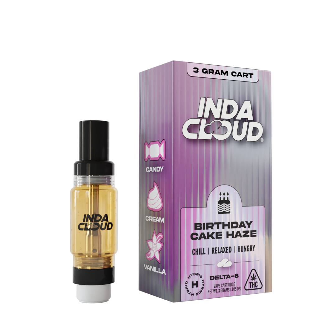 Sweet vanilla frosting pop meets balanced Delta 8 chill with Birthday Cake Haze, delivering mood-boosting euphoria, gentle relaxation, and sugary sweetness in a sleek 3g cartridge.
