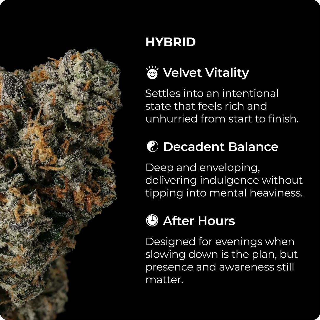 Rich Biscotti pairs deep body comfort with a decadent, yet controlled headspace. An indulgent hybrid built for truly slowing down, without checking out.