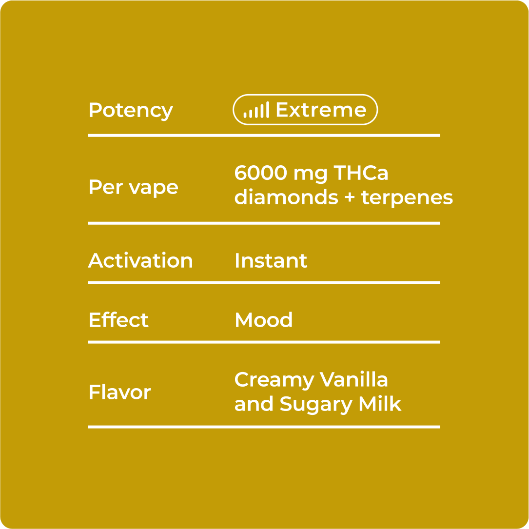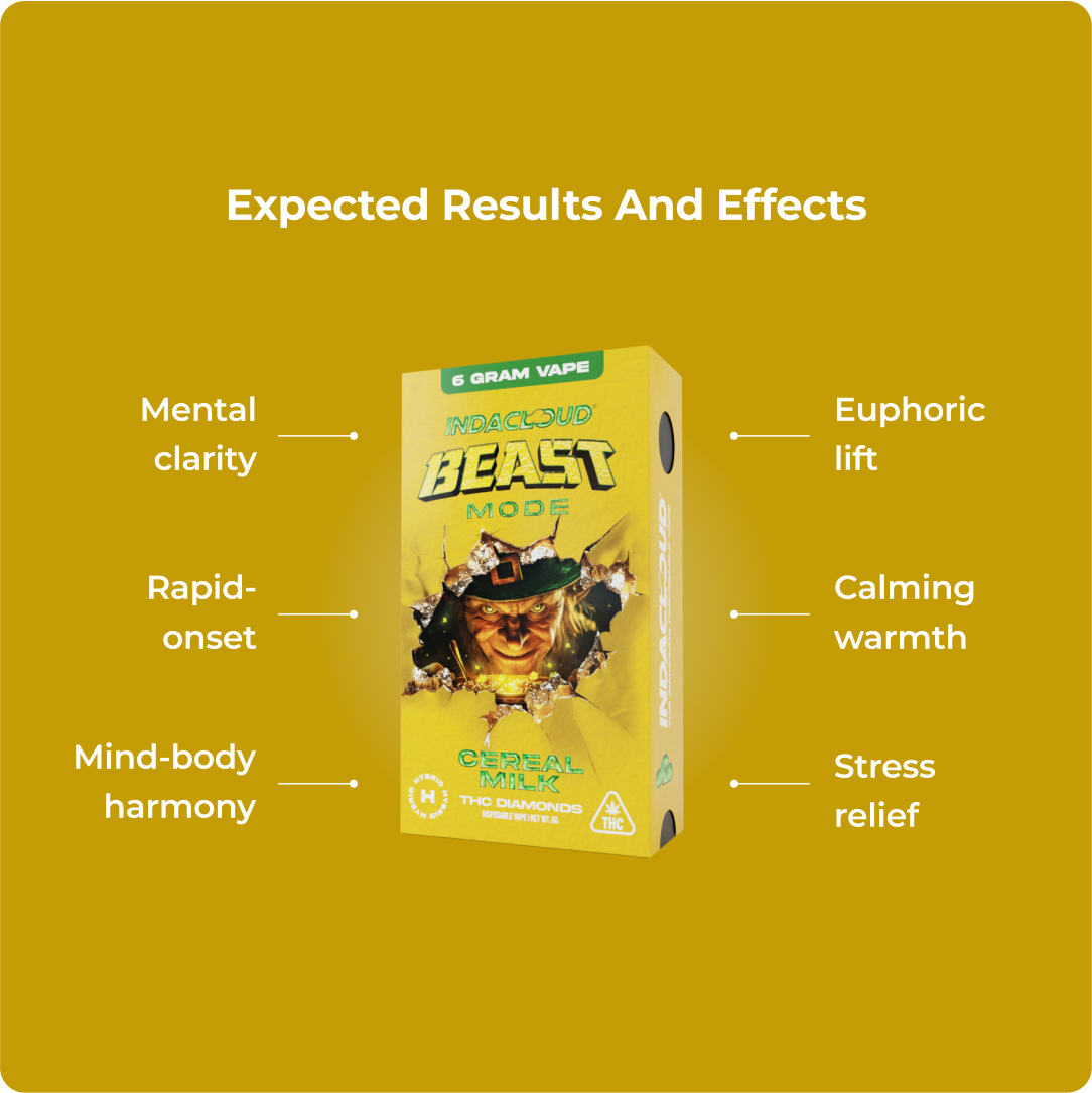 Creamy vanilla-berry sweetness meets powerful THCA diamonds, Cereal Milk delivers elevated mood, sharp creativity, and rich dessert flavor in this high-potency 6 g Beast Mode vape.