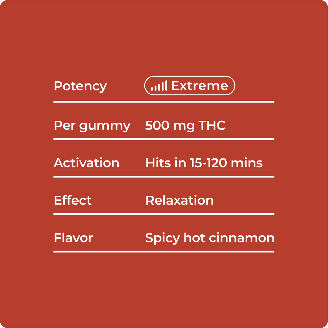 Fiery cinnamon-flavored vegan gummies pack potent THCA energy and bold spicy flavor. Designed for experienced users seeking a powerful, sustained uplift.