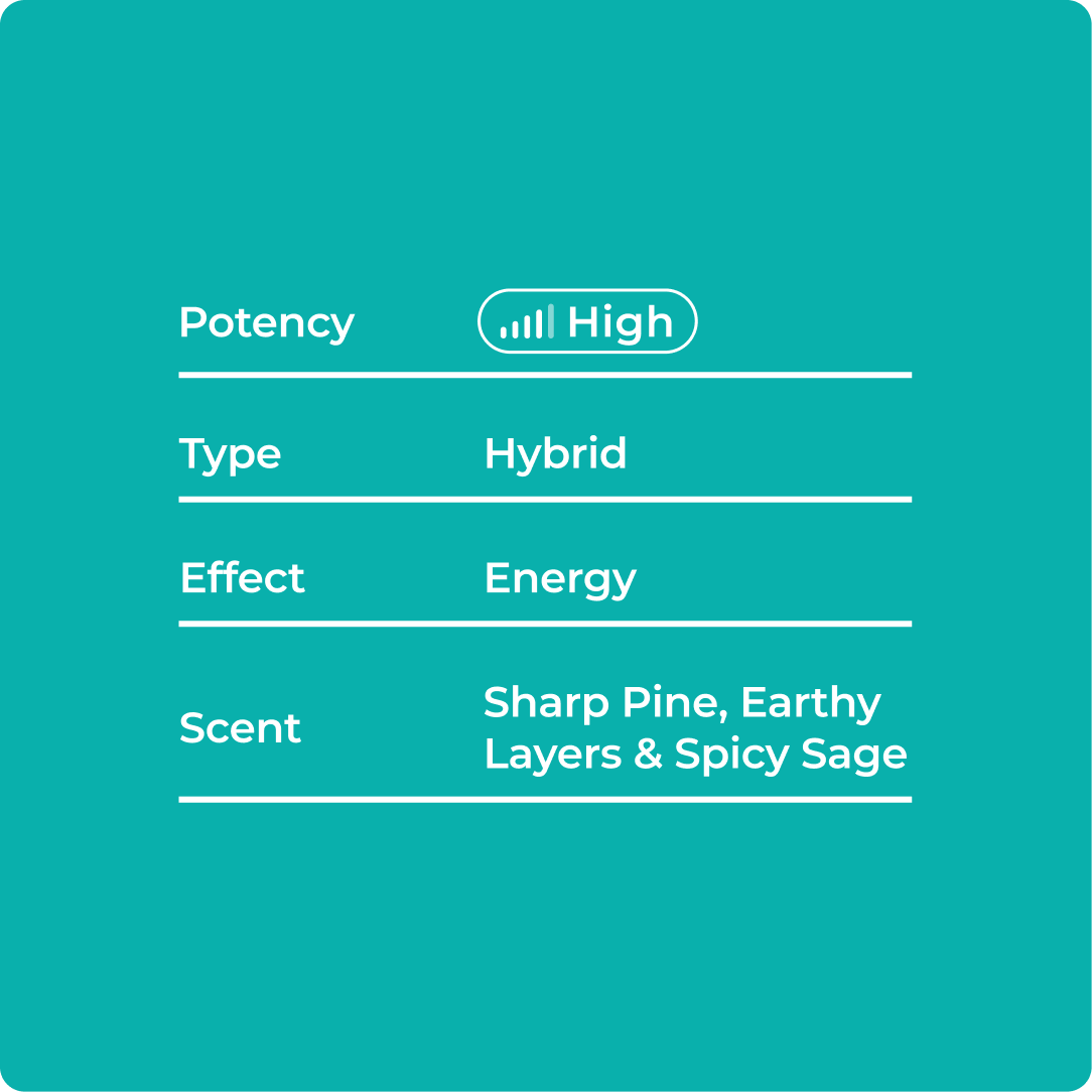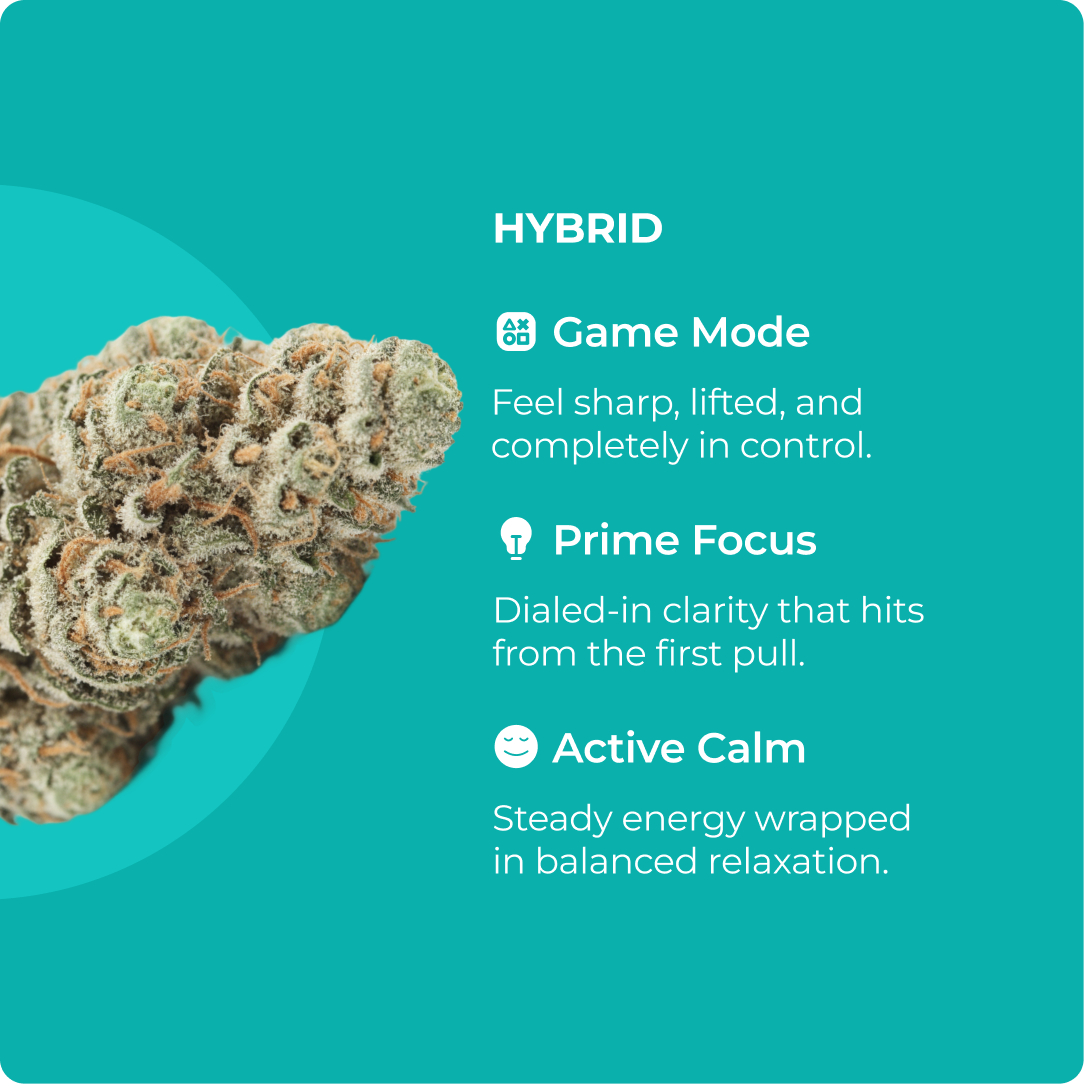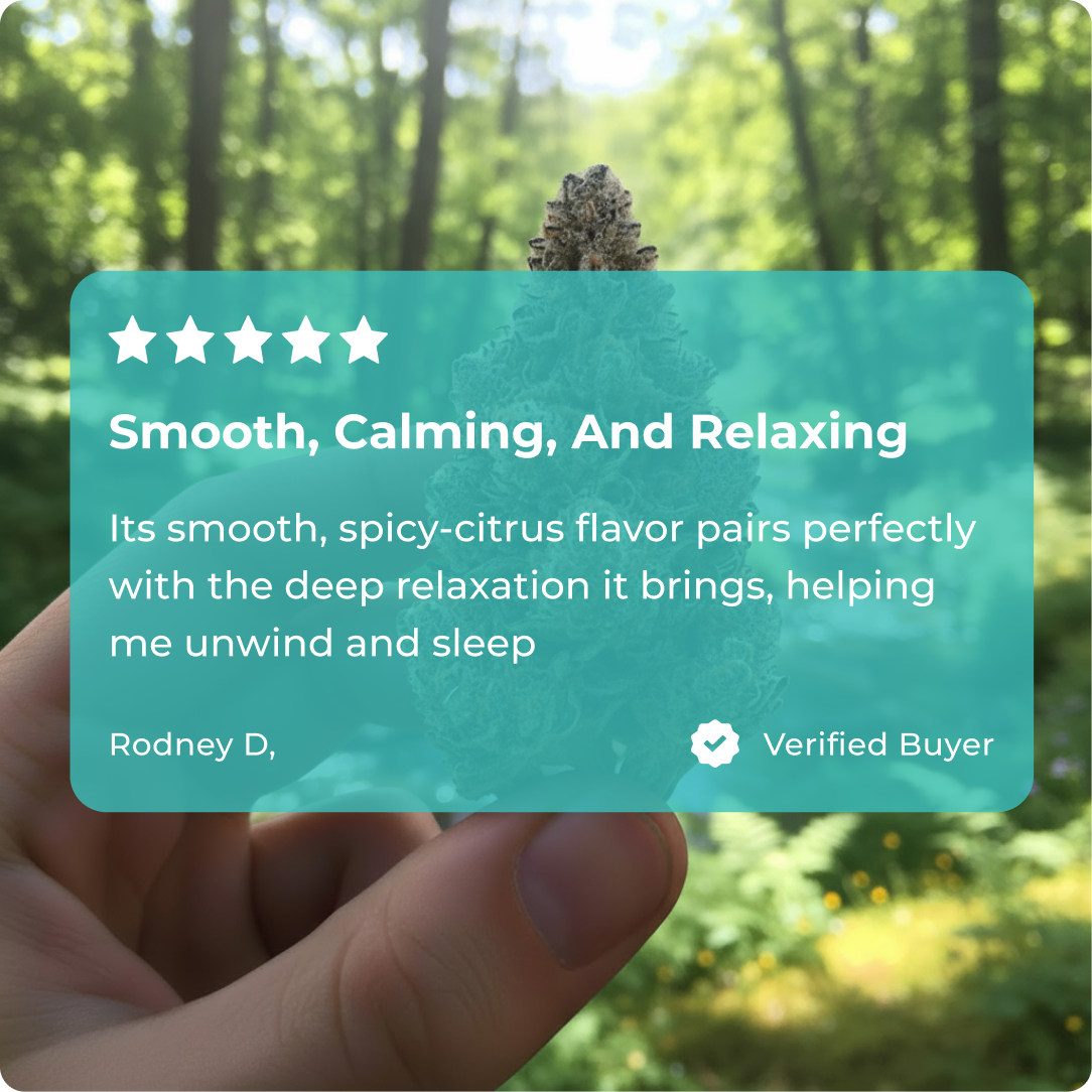 Award-winning indica-forward hybrid blending mellow body relief, clear-headed energy, and spicy-citrus flavors. Perfect for stress relief with a creative spark.