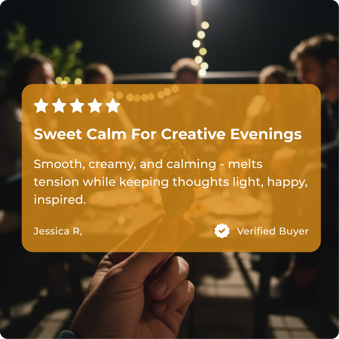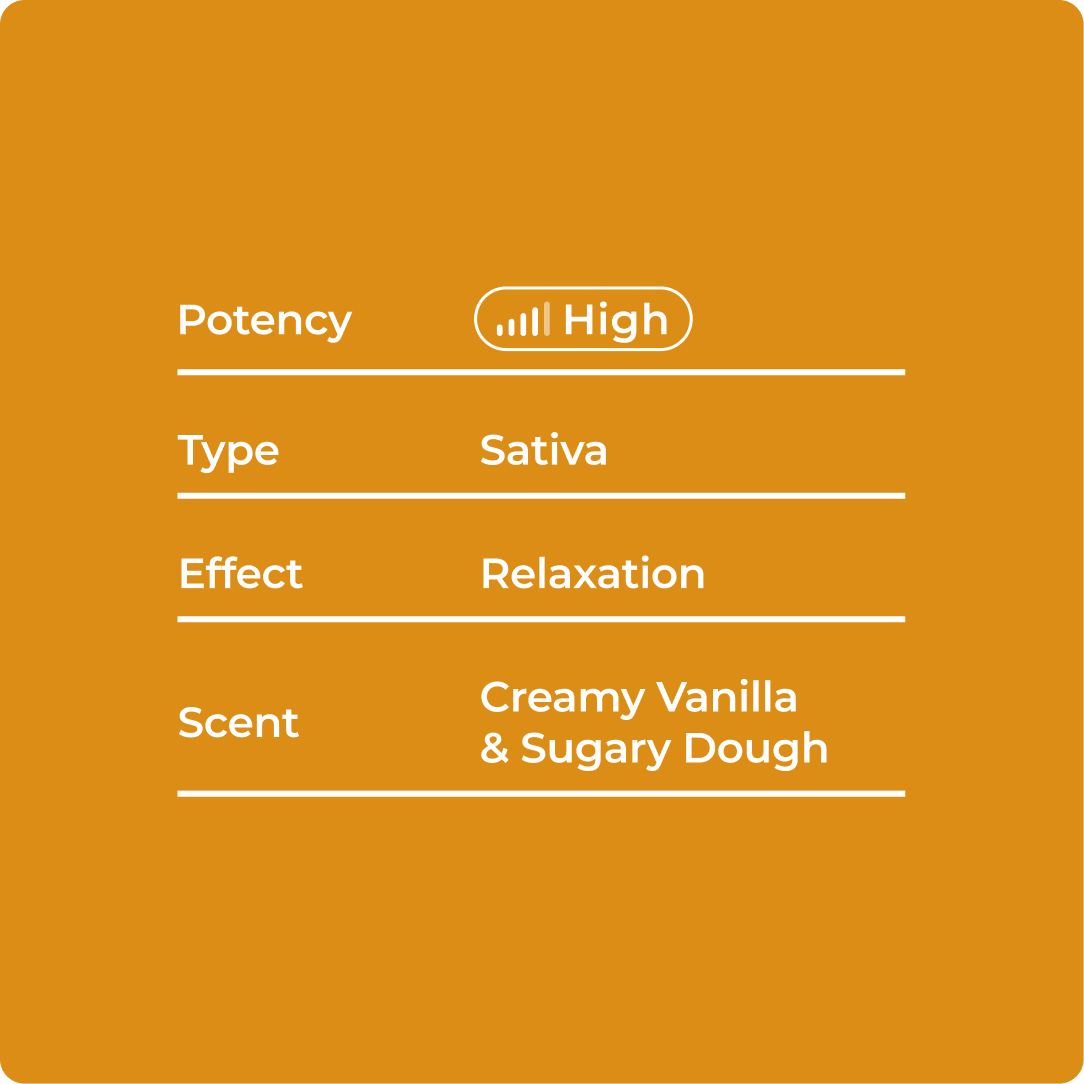 Sweet vanilla-cream flavor ideal for relaxing, Ice Cream Cake delivers euphoric uplift, gentle sedation, stress relief, and the perfect nighttime wind-down.