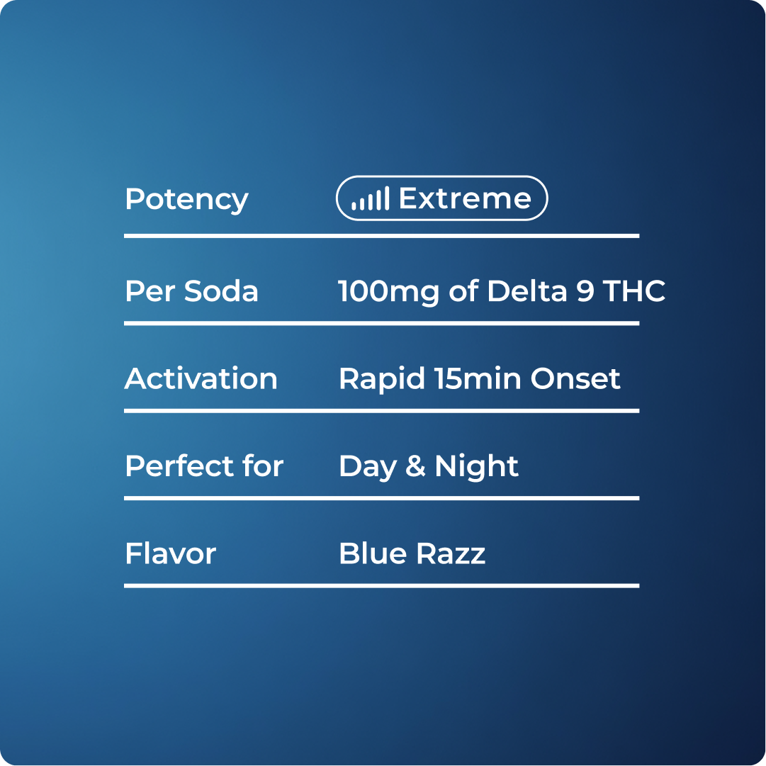 Carbonated RO Water, Natural Flavor, Acacia Gum, Tartaric Acid, Citric Acid, Phosphoric Acid, Sucralose, Salt, Hemp-Derived Delta 9 THC