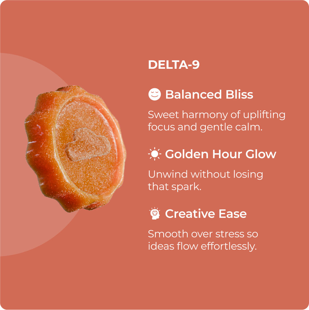 Great question! When most people say THC, they are referring to Delta-9 THC specifically – stoners’ favorite cannabinoid for unlocking creativity, giggles, and great snacks! Known for feelings of euphoria, relaxation, and altered senses, THC provides the “high” and majority of therapeutic benefits we expect from weed.
