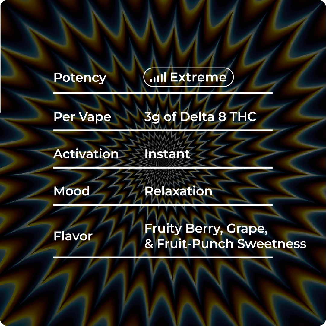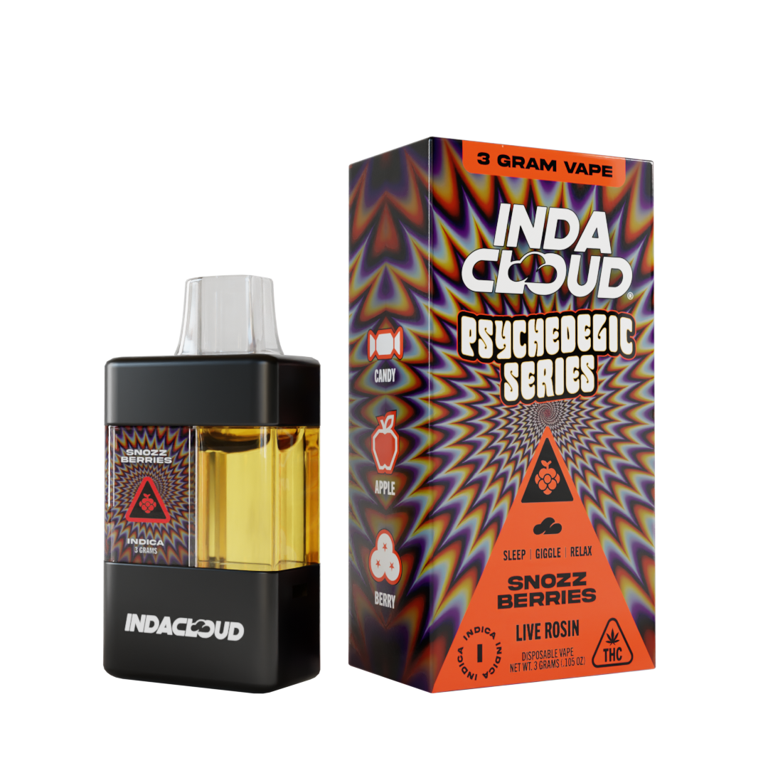 Fruity punch meets blissful calm, Snozzberries delivers dreamy indica relaxation, uplifting mood euphoria, and candy-like berry flavor in this psychedelic 3 g vape experience.