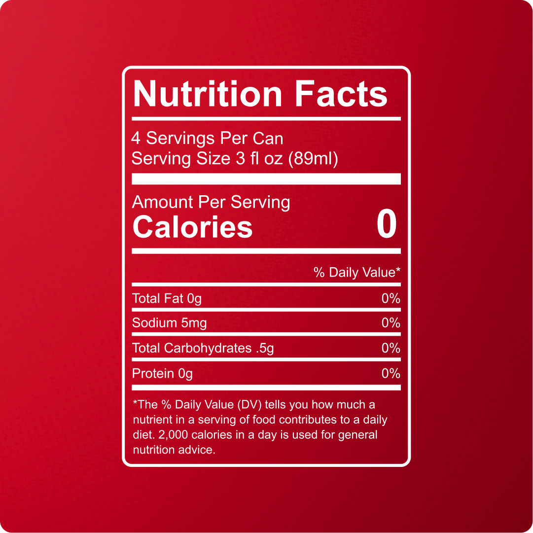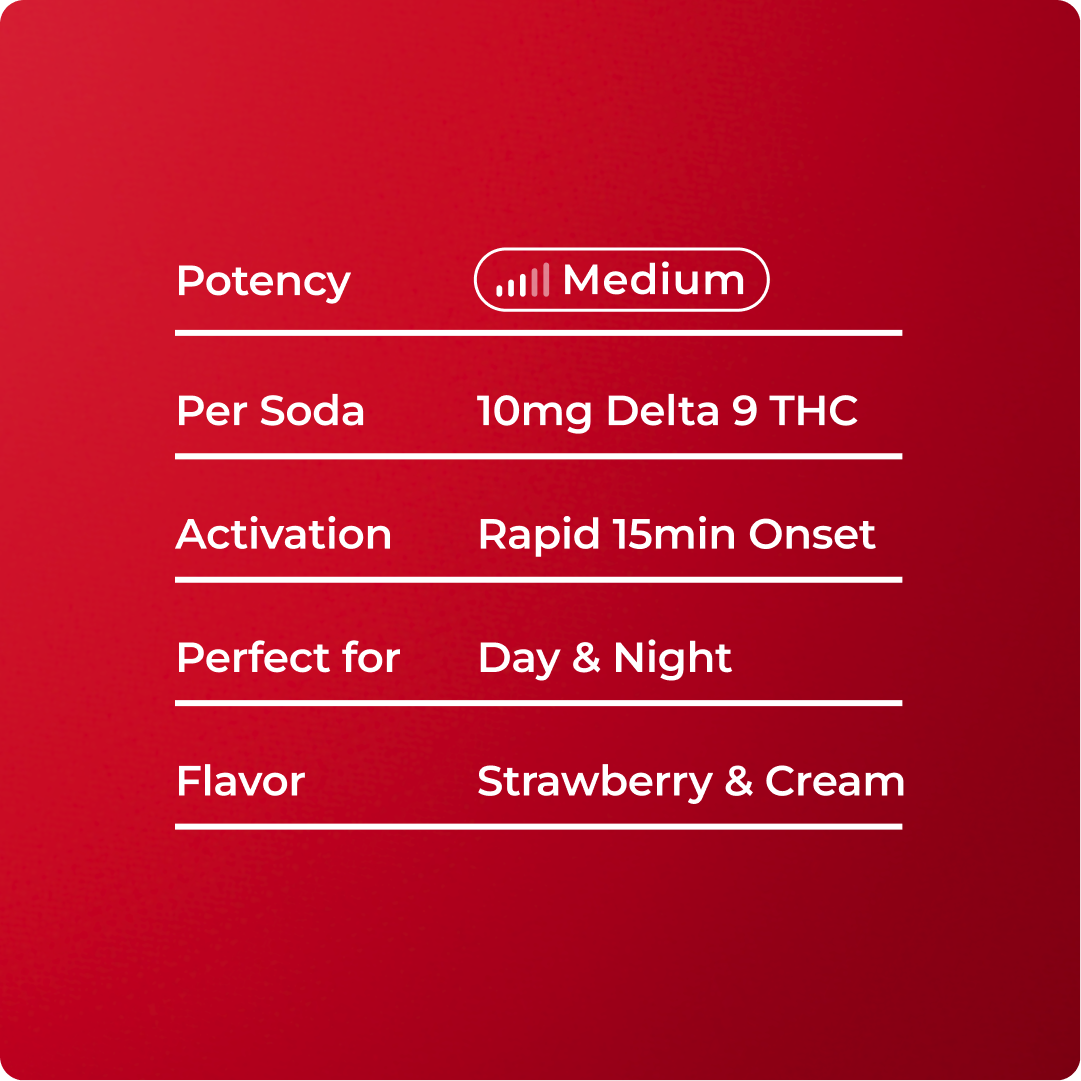 Carbonated RO Water, Natural Flavor, Acacia Gum, Tartaric Acid, Citric Acid, Phosphoric Acid, Sucralose, Salt, Hemp-Derived Delta 9 THC