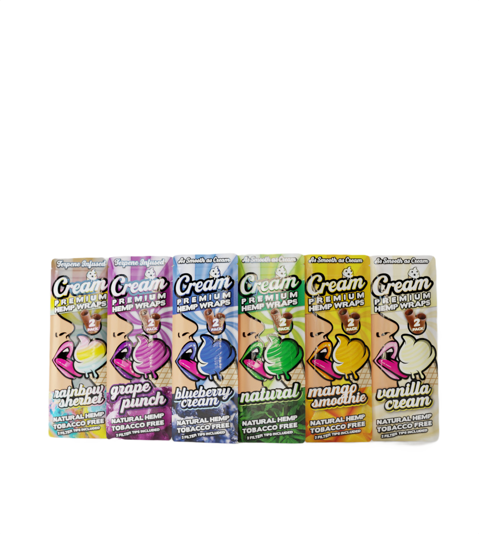 The Terpene Infused Hemp Wrap Bundle features an exciting selection of six distinct flavors, carefully curated to enhance your smoking experience. In each bundle, you'll receive one pack each of Blueberry, Grape Punch, Mango Smoothie, Natural, Rainbow Sherbert, and Vanilla. These flavors are infused with natural terpenes, adding a delightful twist to your smoking sessions. Whether you prefer a fruity burst, a mellow taste, or a classic flavor, this bundle has something for every discerning smoker. Indulge in the rich essence of Blueberry, the zesty kick of Grape Punch, the tropical vibes of Mango Smoothie, the pure and unadulterated Natural flavor, the whimsical blend of Rainbow Sherbert, or the comforting notes of Vanilla. With this diverse range of flavors, you can switch up your smoking experience and enjoy a variety of delightful tastes with each pack.